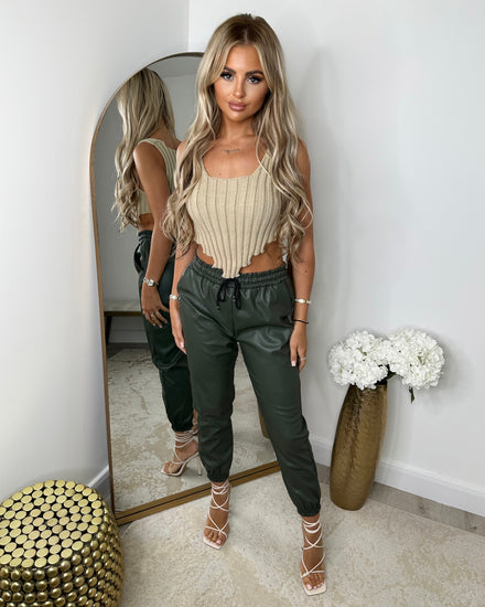 Harley Leather Look Joggers - Khaki