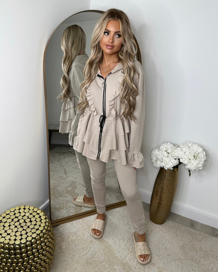 Simone Zip Front Pocket Detail Loungewear - Beige