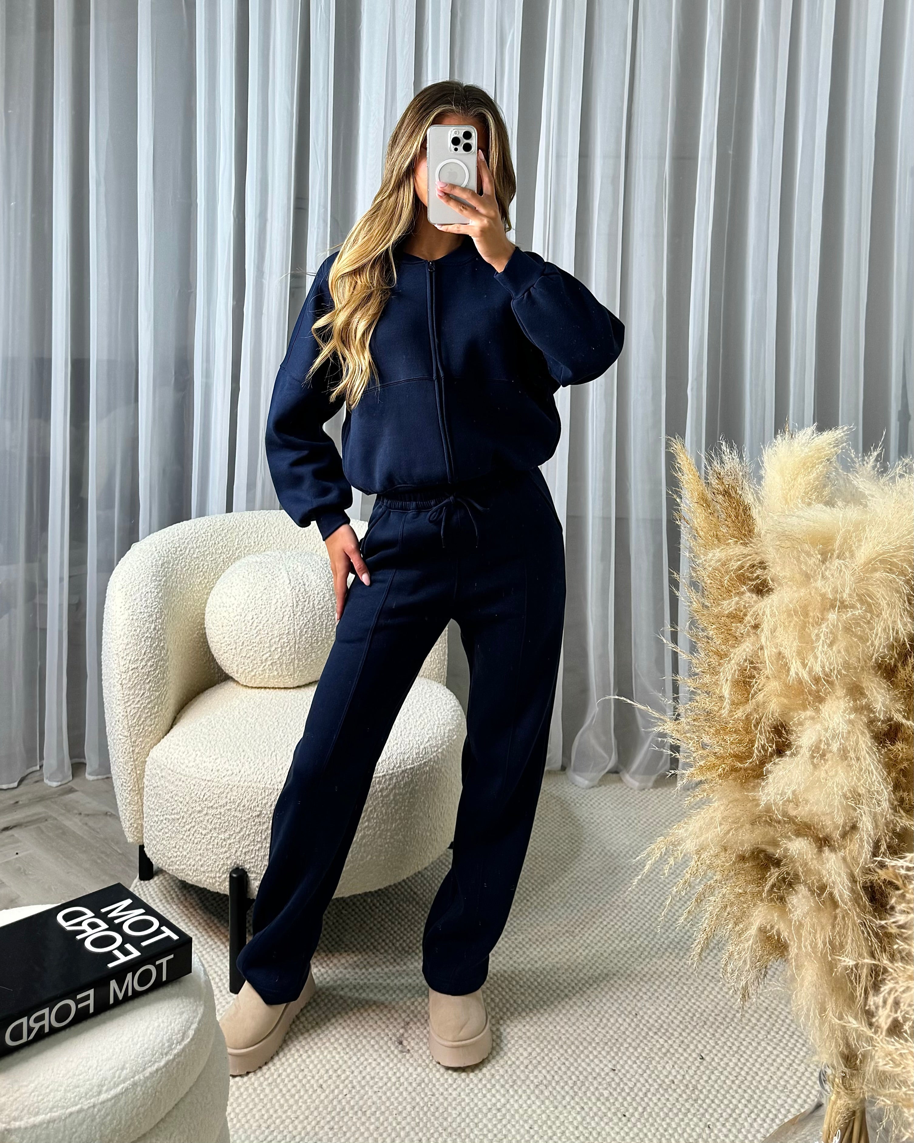 Amelia Bomber Zip Jacket & Straight Leg Joggers Set- Navy