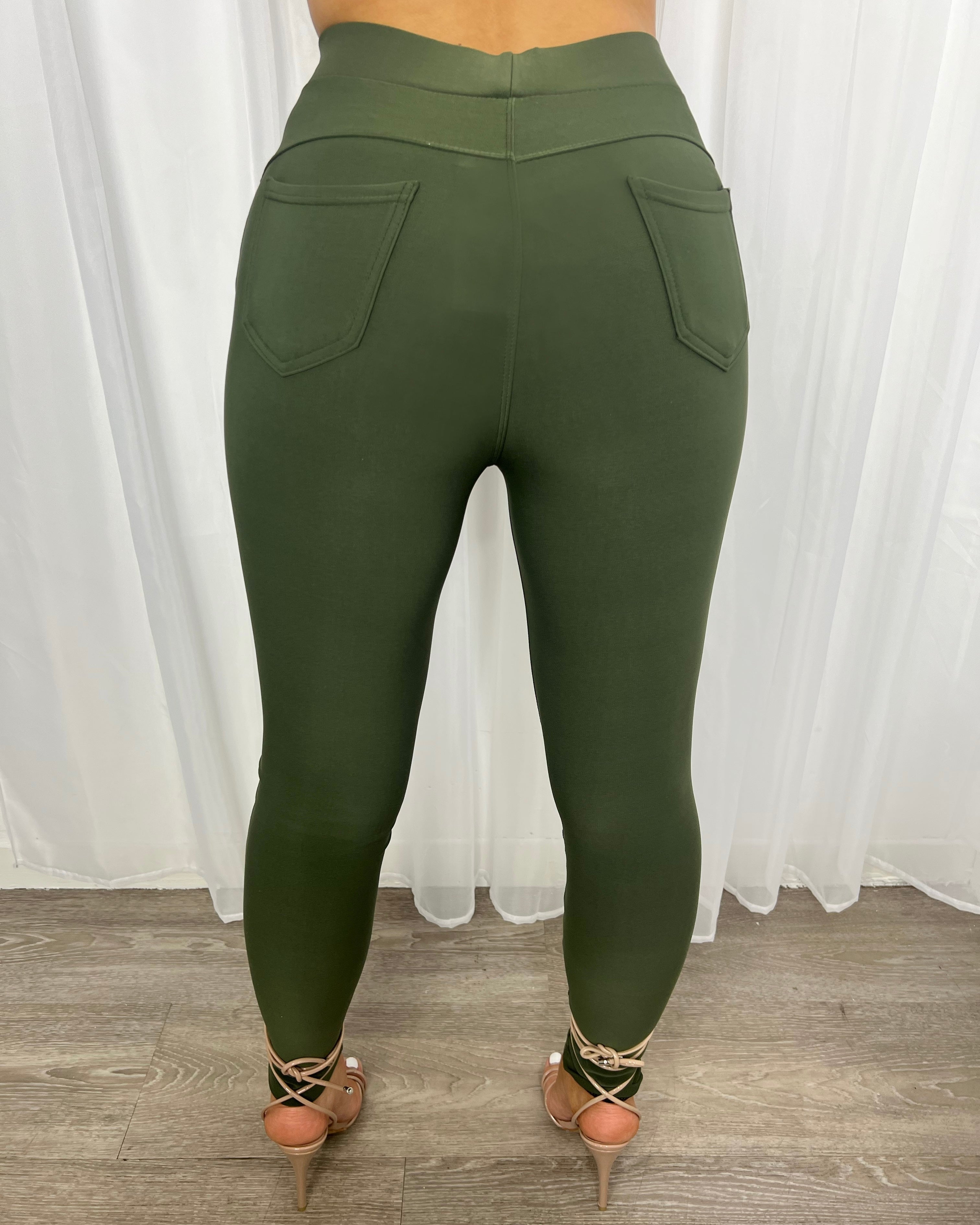 Destiny Straight Leg High Waisted Legging - Khaki