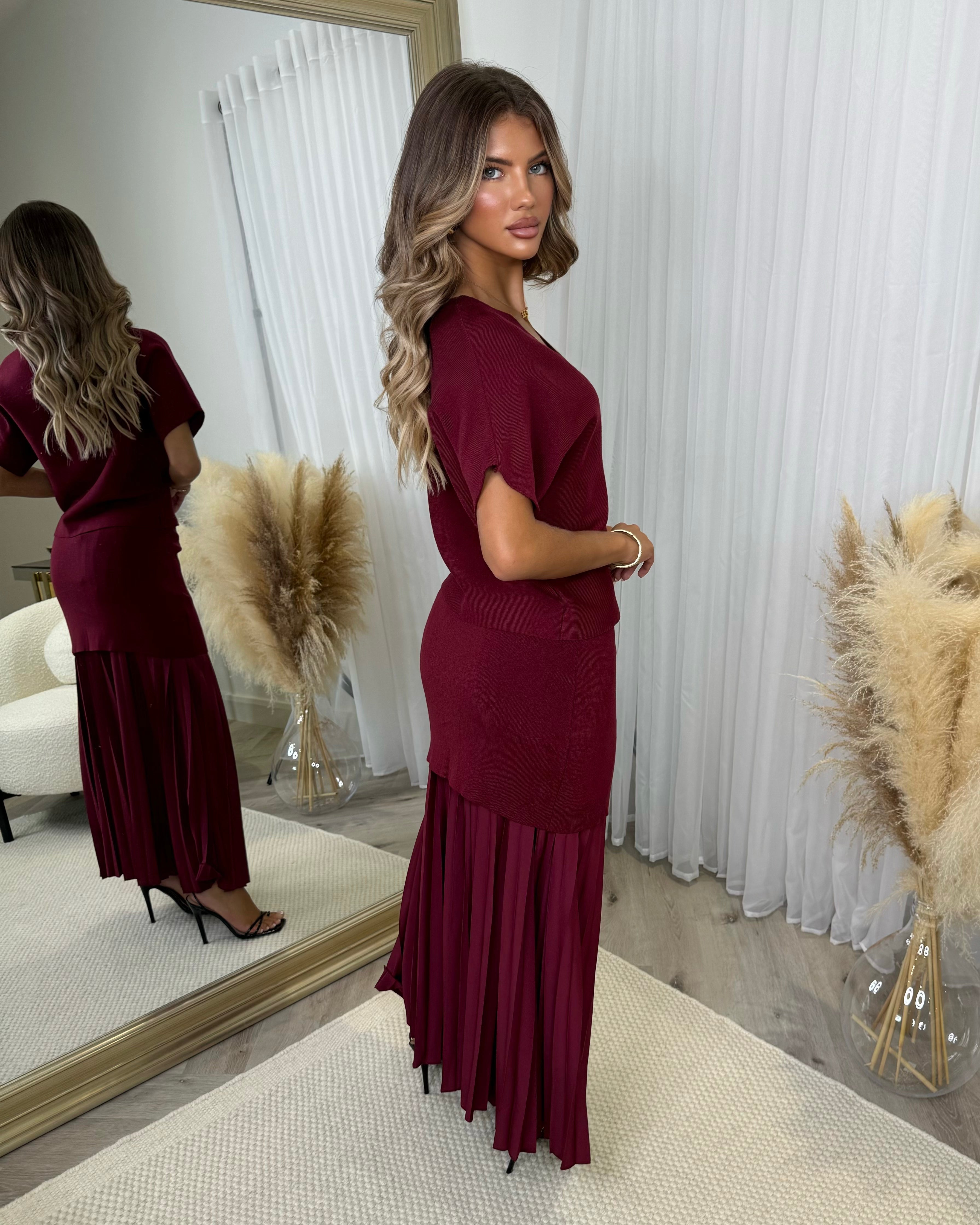 Emery Short Sleeve Top & Frill Detail Skirt - Wine