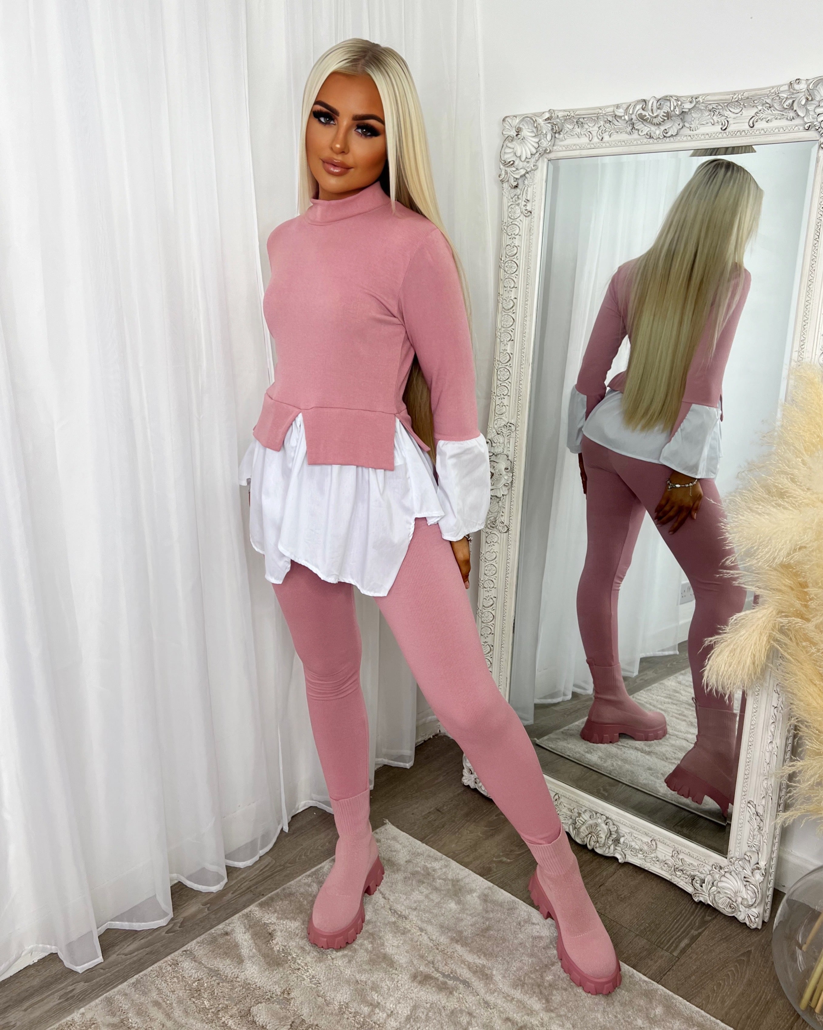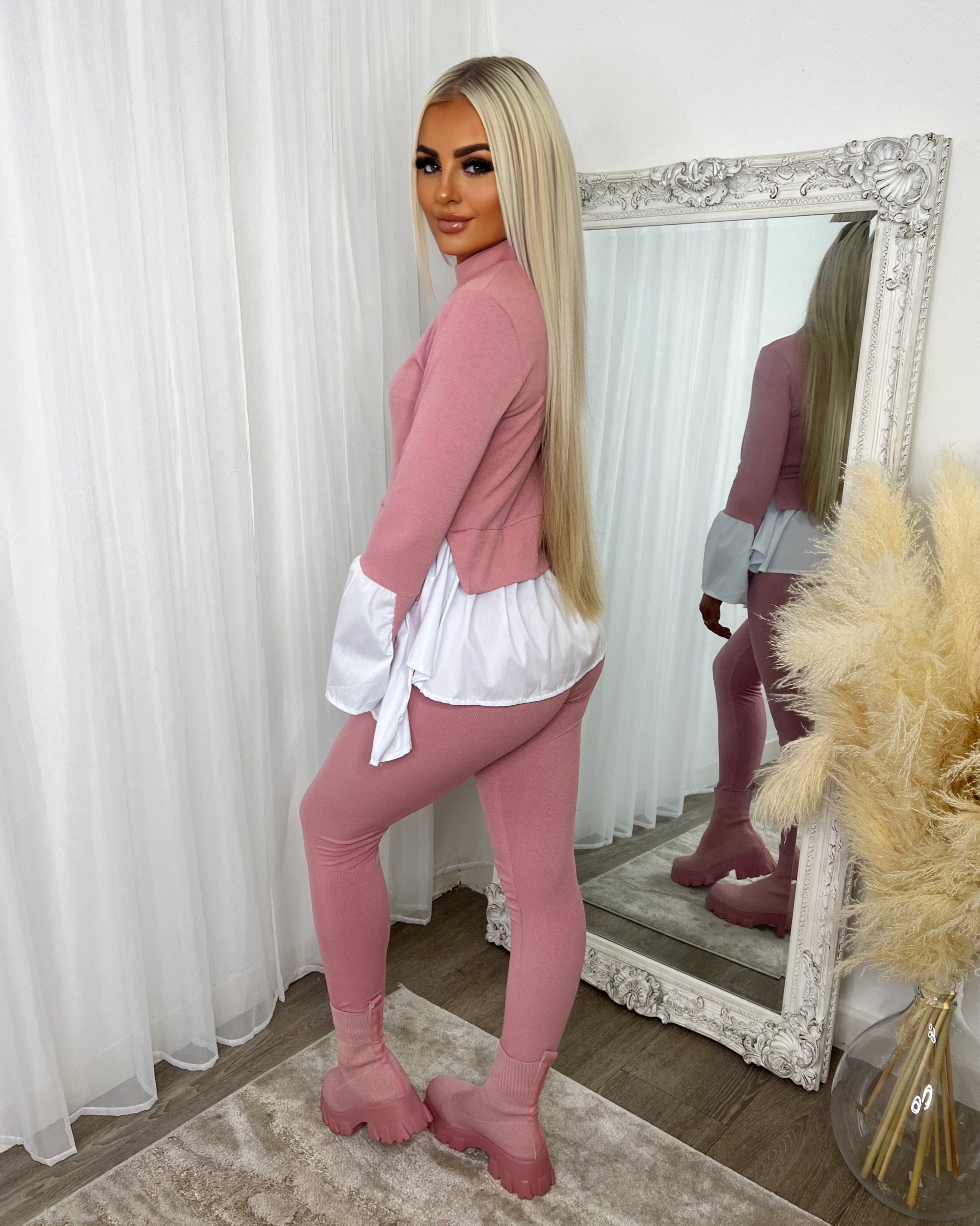 Francine Shirt Jumper Loungewear Set - Light Pink