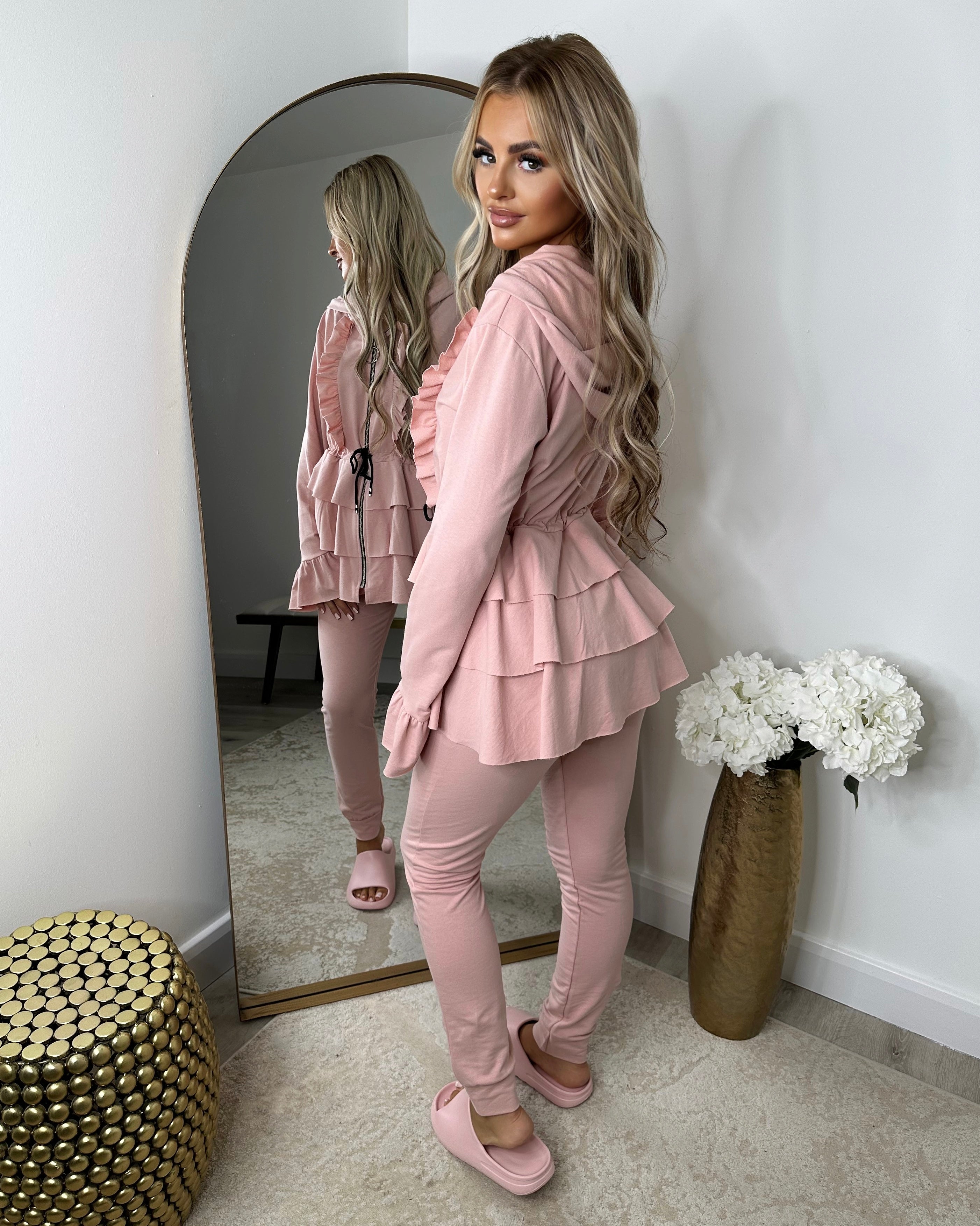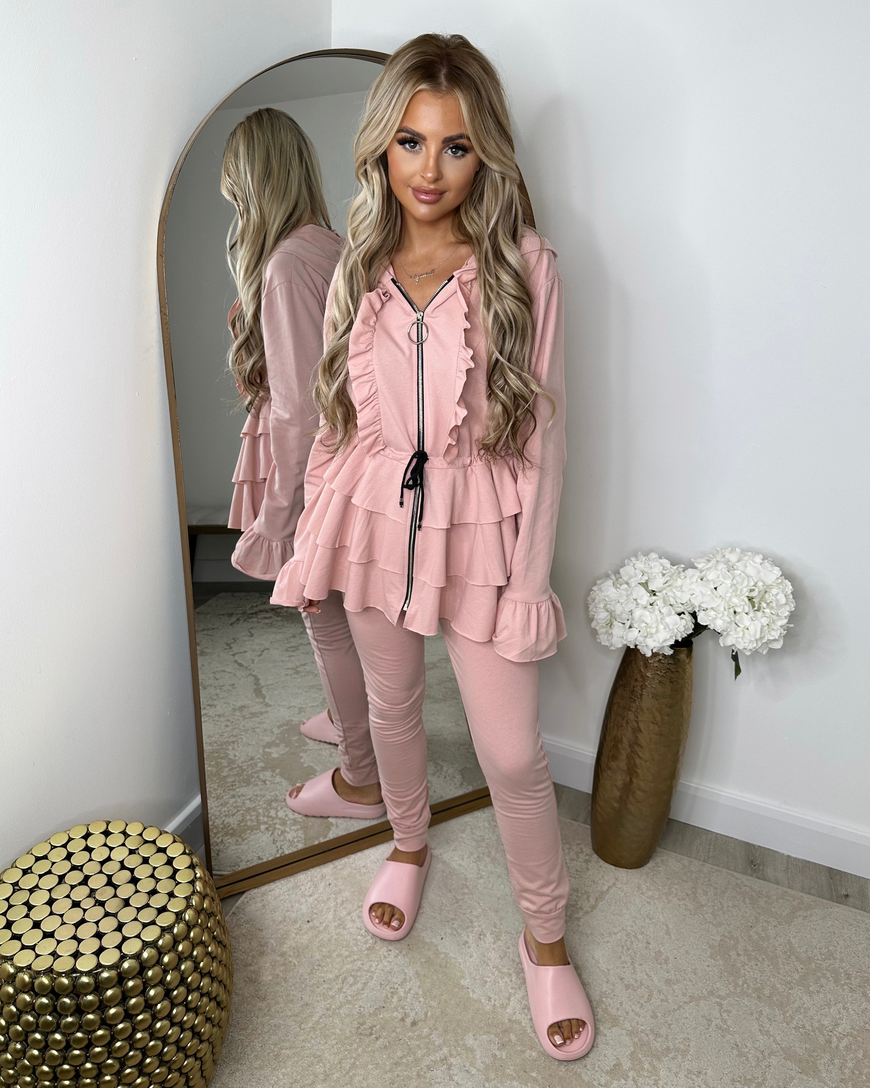 Kayla Frill Full Zip Loungewear - Pink