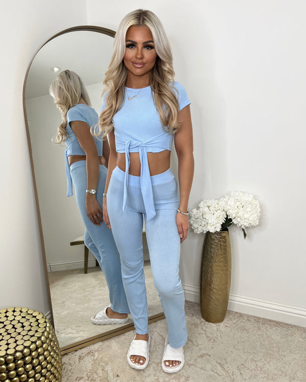 Laura Tie Front Cropped Loungewear Set - Baby Blue