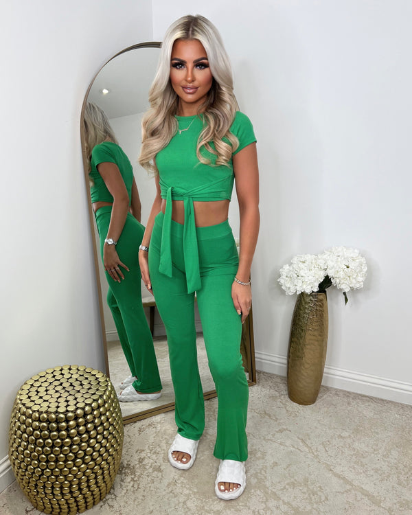 Laura Tie Front Cropped Loungewear Set - Parrot Green