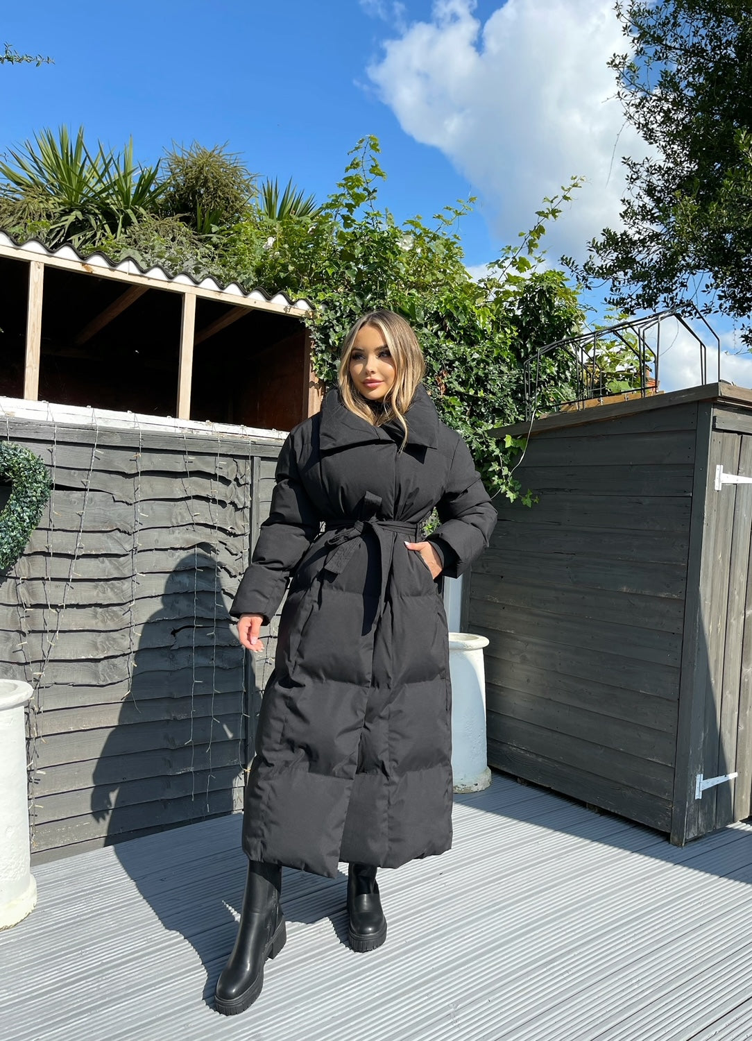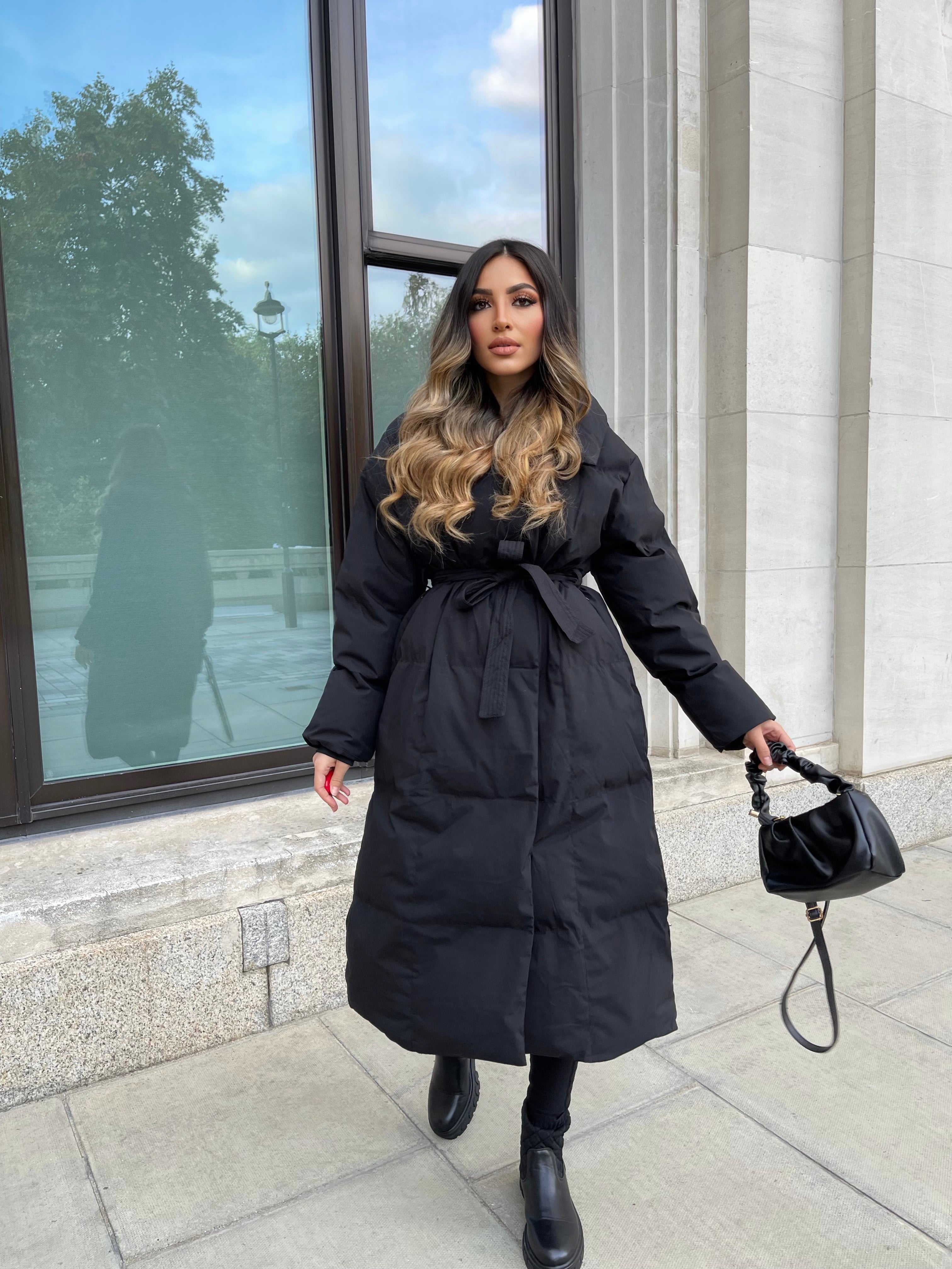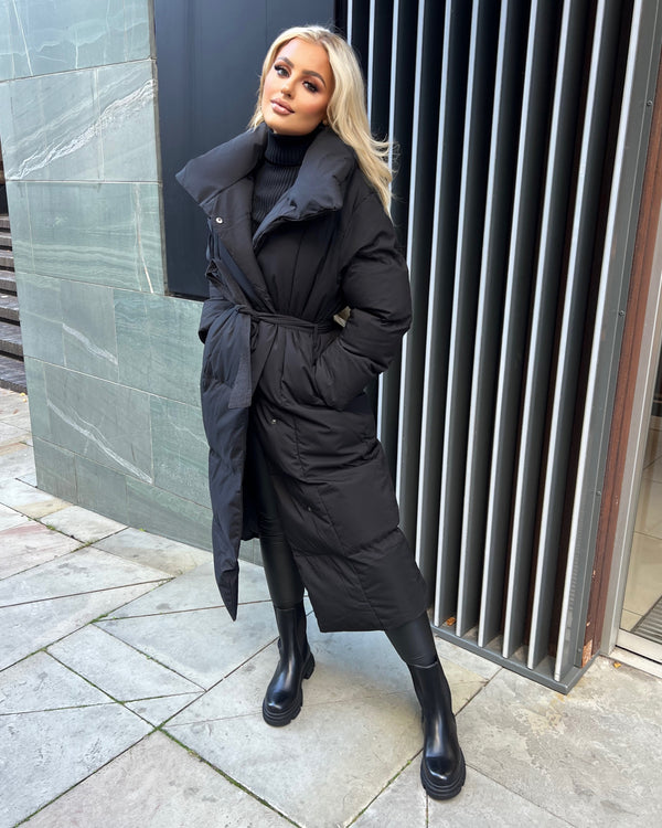 Trisha Long Padded Duvet Trench Coat - Black
